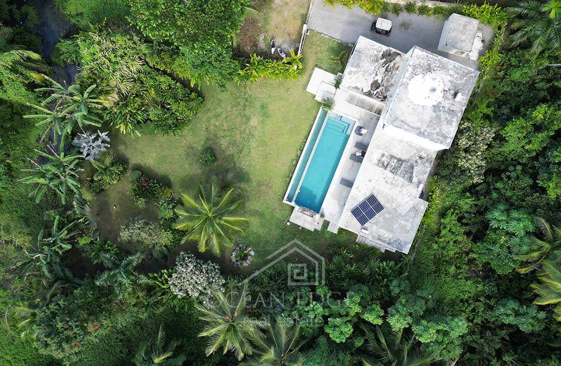 Set on a generous 14,000 sq ft (1.350 m²) parcel, the estate is surrounded by mature tropical landscaping that ensures privacy and a serene atmosphere. The house has been thoughtfully designed to emphasize open living and a seamless indoor–outdoor connection, with floor-to-ceiling sliding glass doors and direct access to exterior spaces from every room.